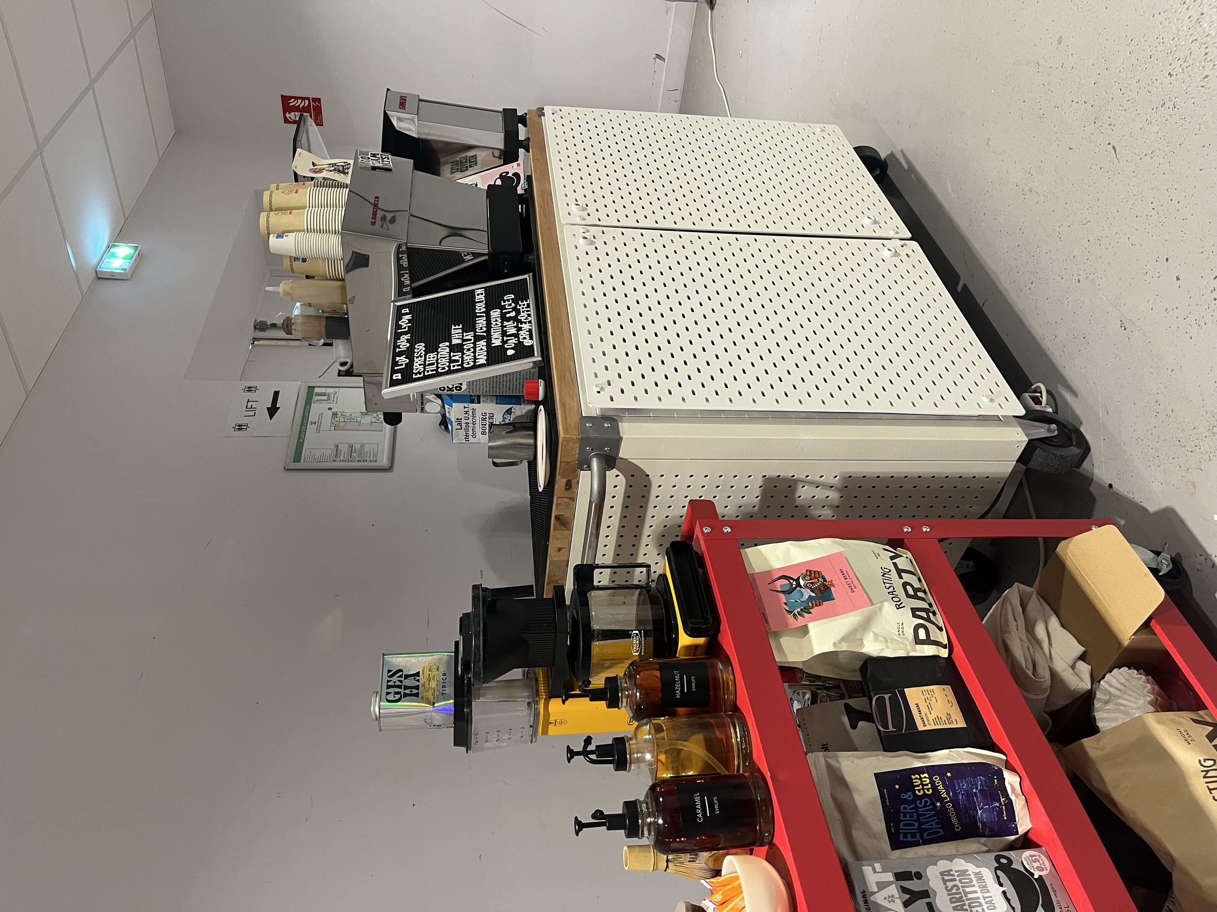 • Gobelets, serviettes, sucre, sirops, agitateurs en bois